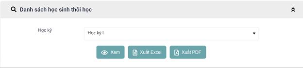 Bước 1: Đăng nhập >> Vào menu “Báo cáo” >> Chọn “Báo cáo hồ sơ học sinh” >>Chọn menu “ Danh sách học sinh thôi học”