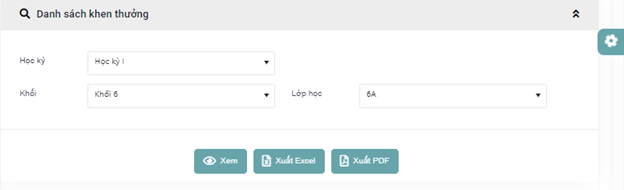- Bước 1: Đăng nhập >> Vào Menu “Báo Cáo” >> Vào chức năng “Báo cáo kết quả học tập” >> chọn “Danh sách khen thưởng”