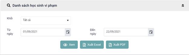 SMAS > Báo cáo (Cấp 2 – Cấp 3) > Báo cáo hồ sơ học sinh > Danh sách học sinh vi phạm > Xuất Excel