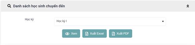Bước 1: Đăng nhập >> Vào menu “Báo cáo” >> Chọn “Báo cáo hồ sơ học sinh” >>Chọn menu “ Danh sách học sinh chuyển đến”