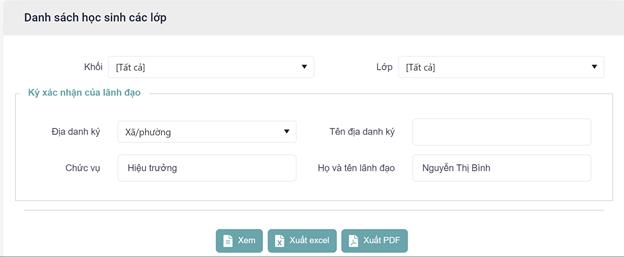 Bước 1: Đăng nhập >> Vào menu “Báo cáo” >> Chọn “Báo cáo hồ sơ học sinh” >>Chọn menu “ Danh sách học sinh các lớp”